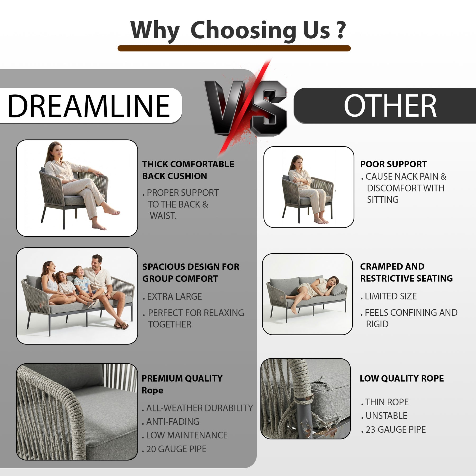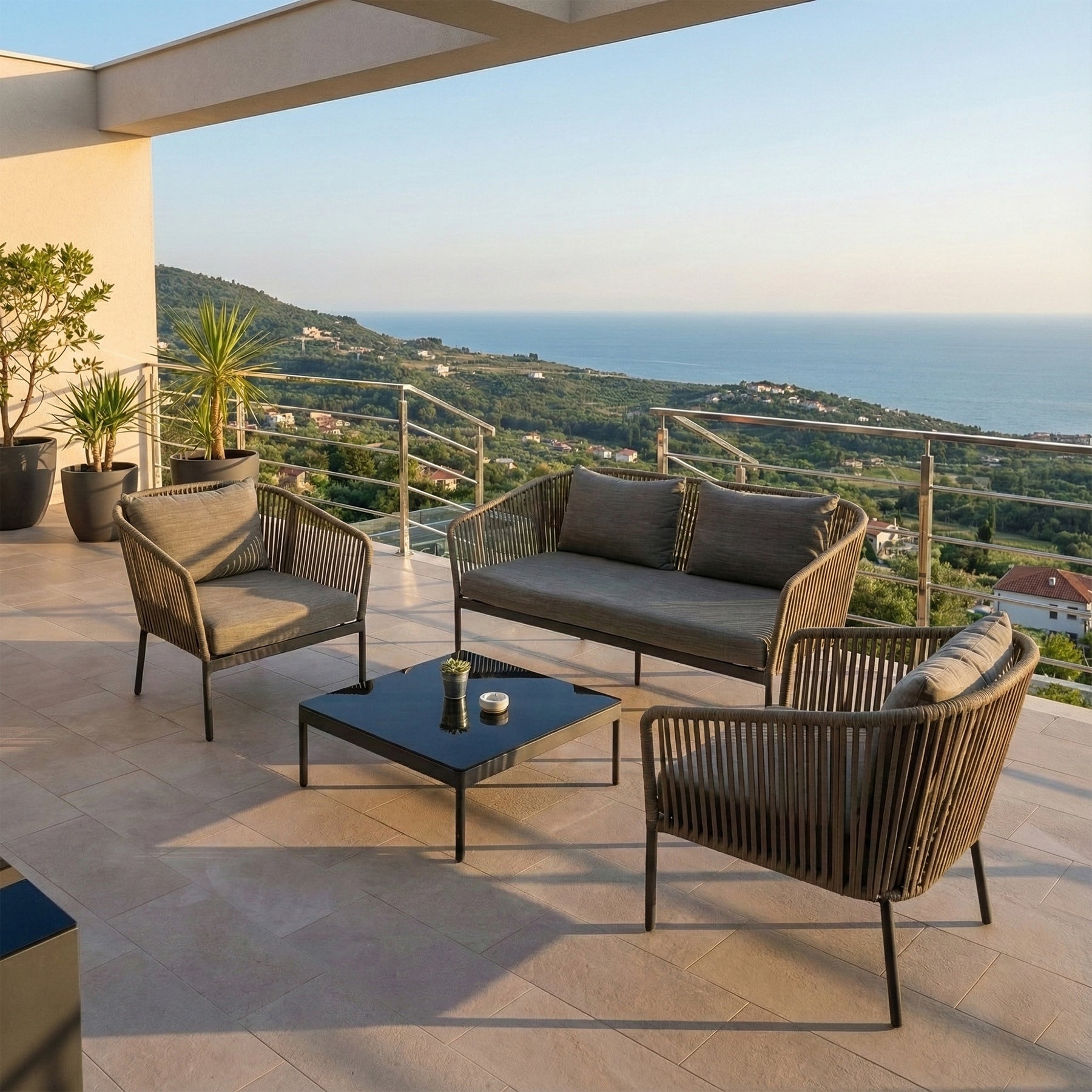 Athan Outdoor Garden Balcony Sofa Set 2 Seater , 2 Single Seater 1 Center Table Set (Dark Grey) Braided and Rope