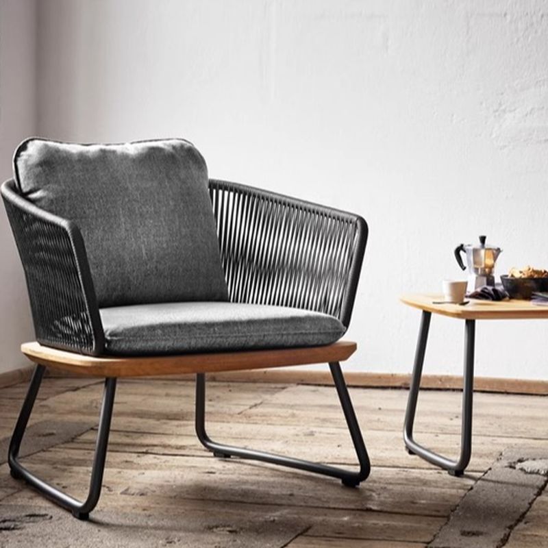 Reevo Outdoor Garden Balcony Sofa Set 2 Seater , 2 Single Seater 1 Center Table Set (Dark Grey) Braided and Rope