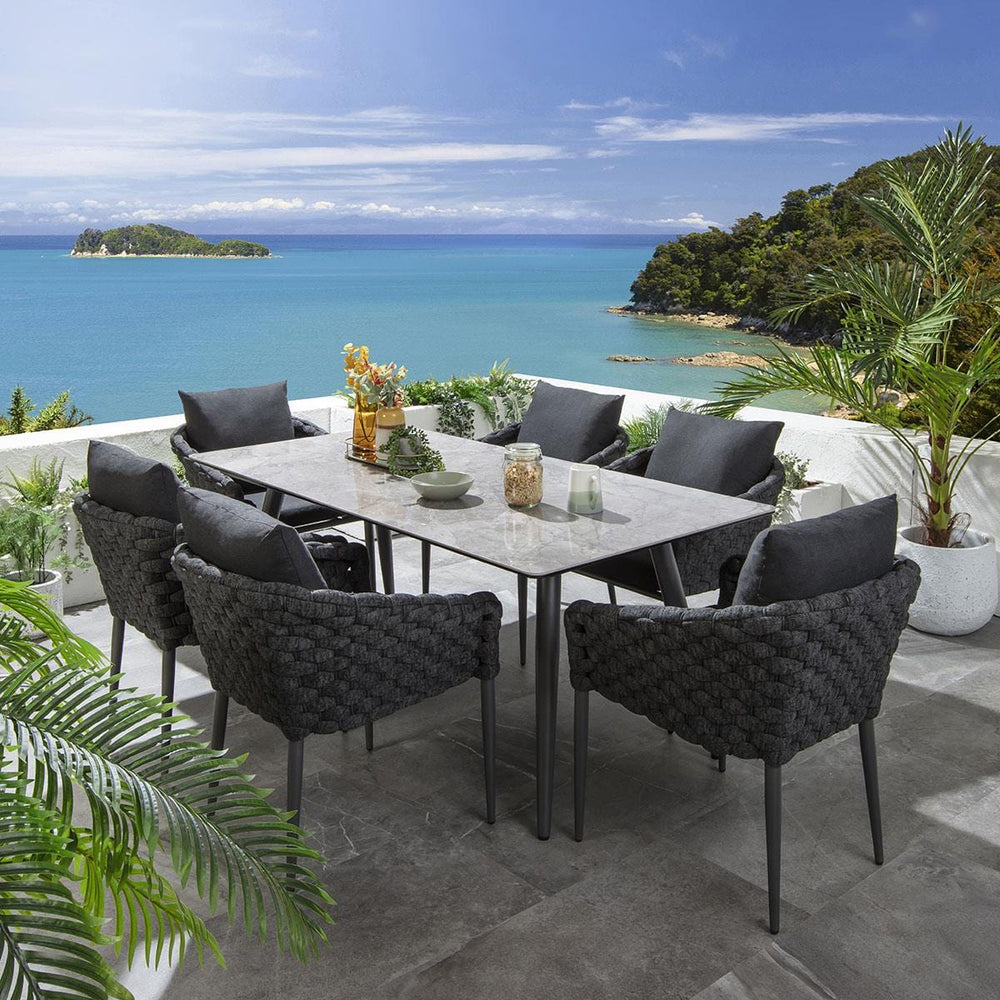 Orso Outdoor Patio Dining Set 6 Chairs and 1 Table (Black)