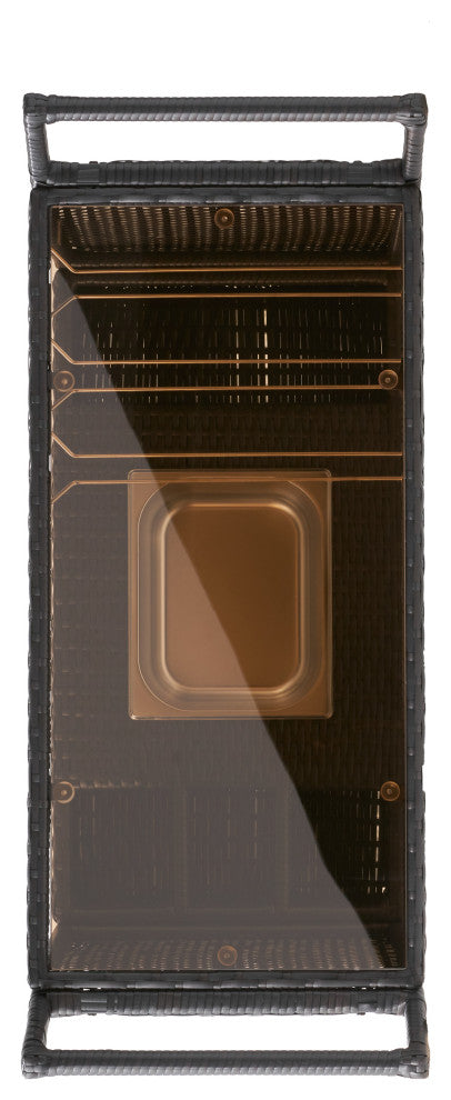 This trolley is made of wicker and is weather-resistant, and need less maintenance. It is suitable for daily use. The powder-coated steel frame keeps the serving cart stable and sturdy. The handle on the top makes it easy to push and pull. Thanks to the smoothly-rolling castors, the trolley can be moved around effortlessly.