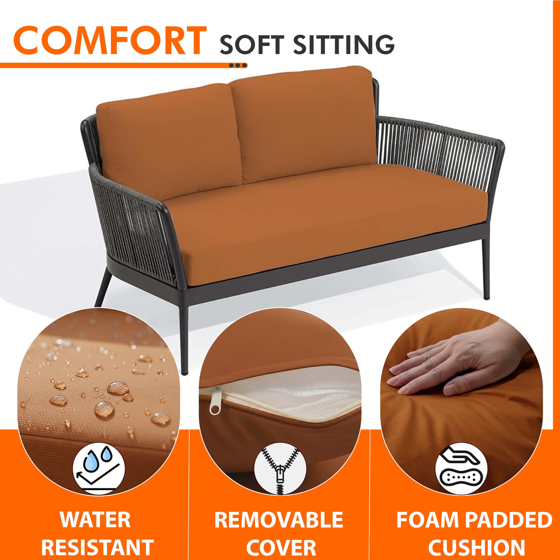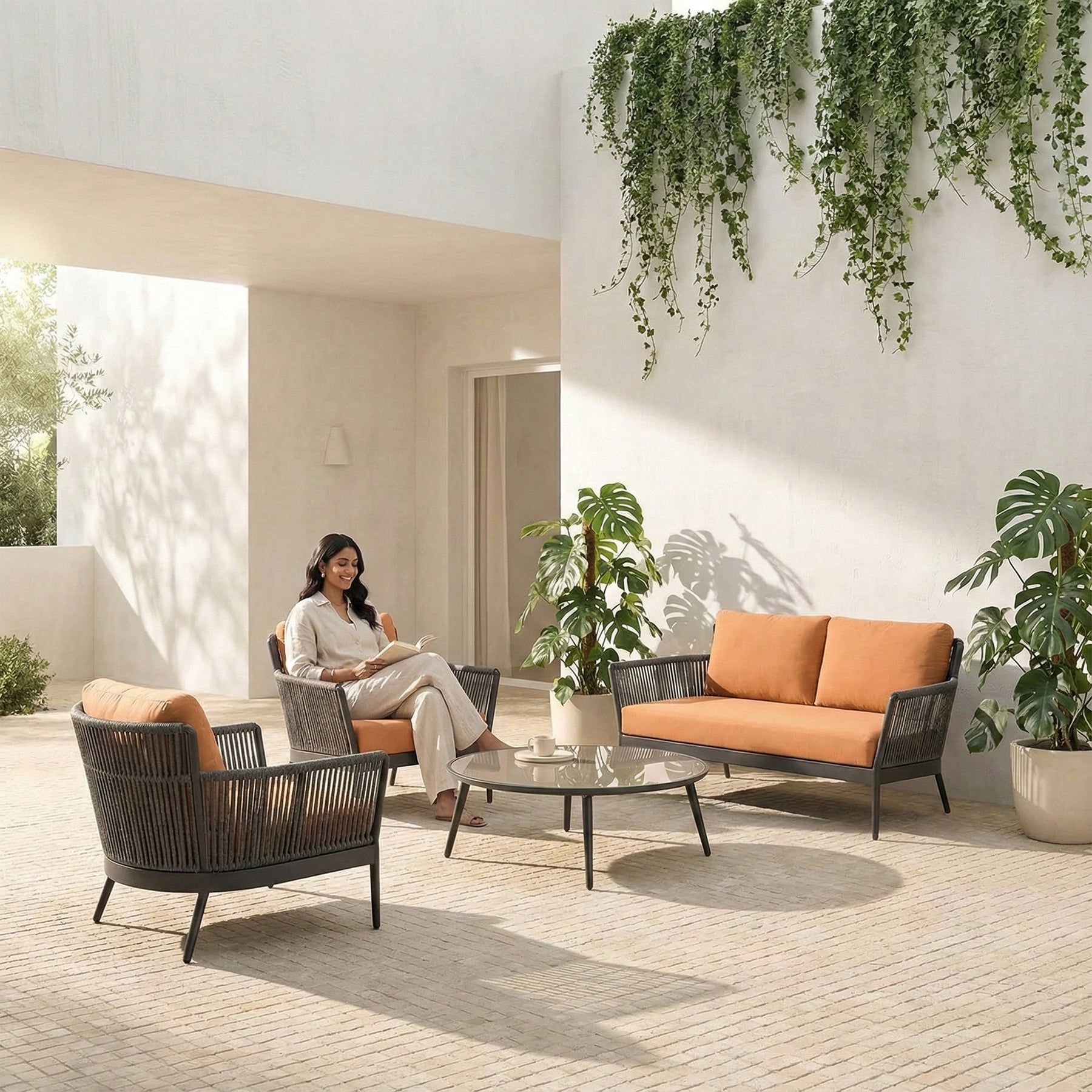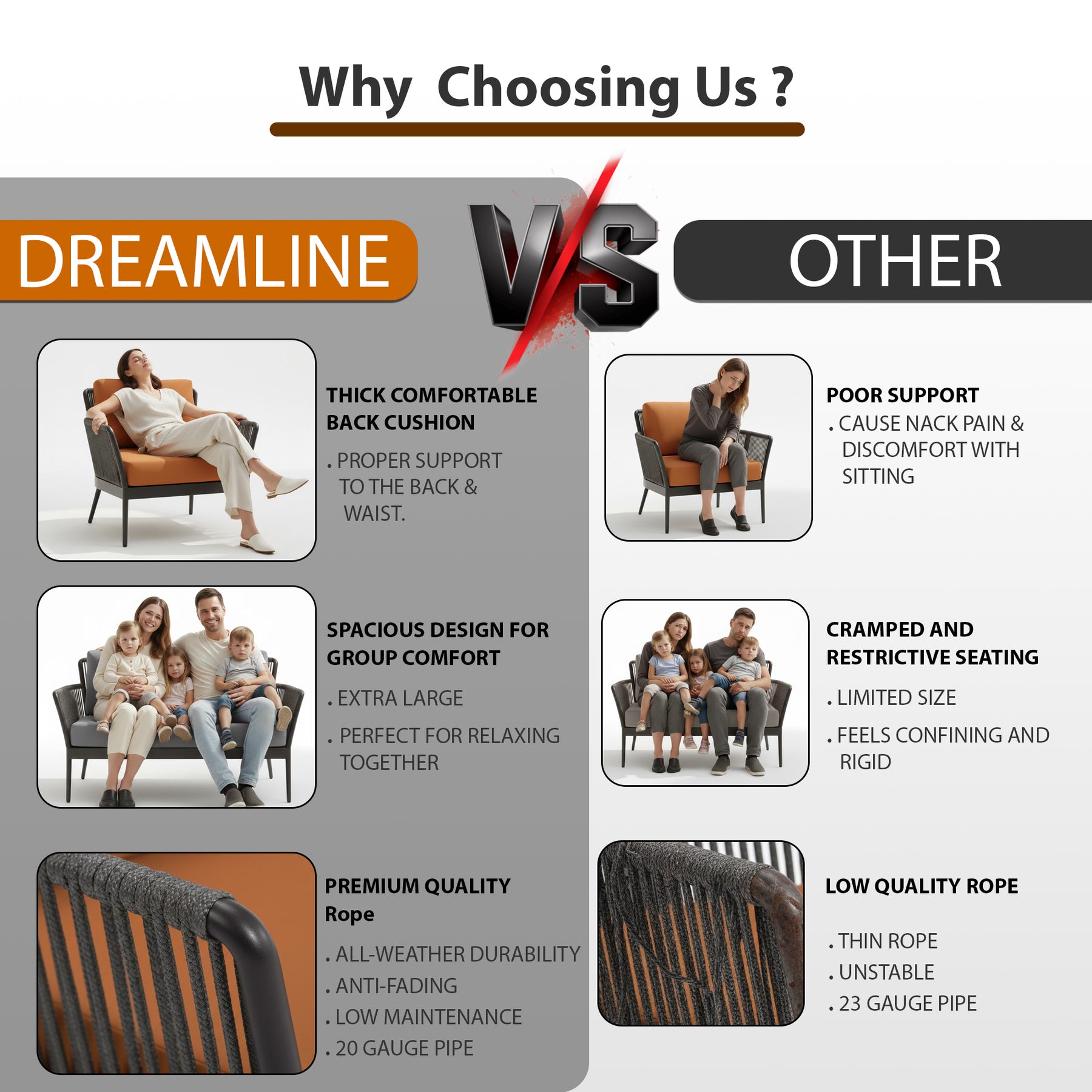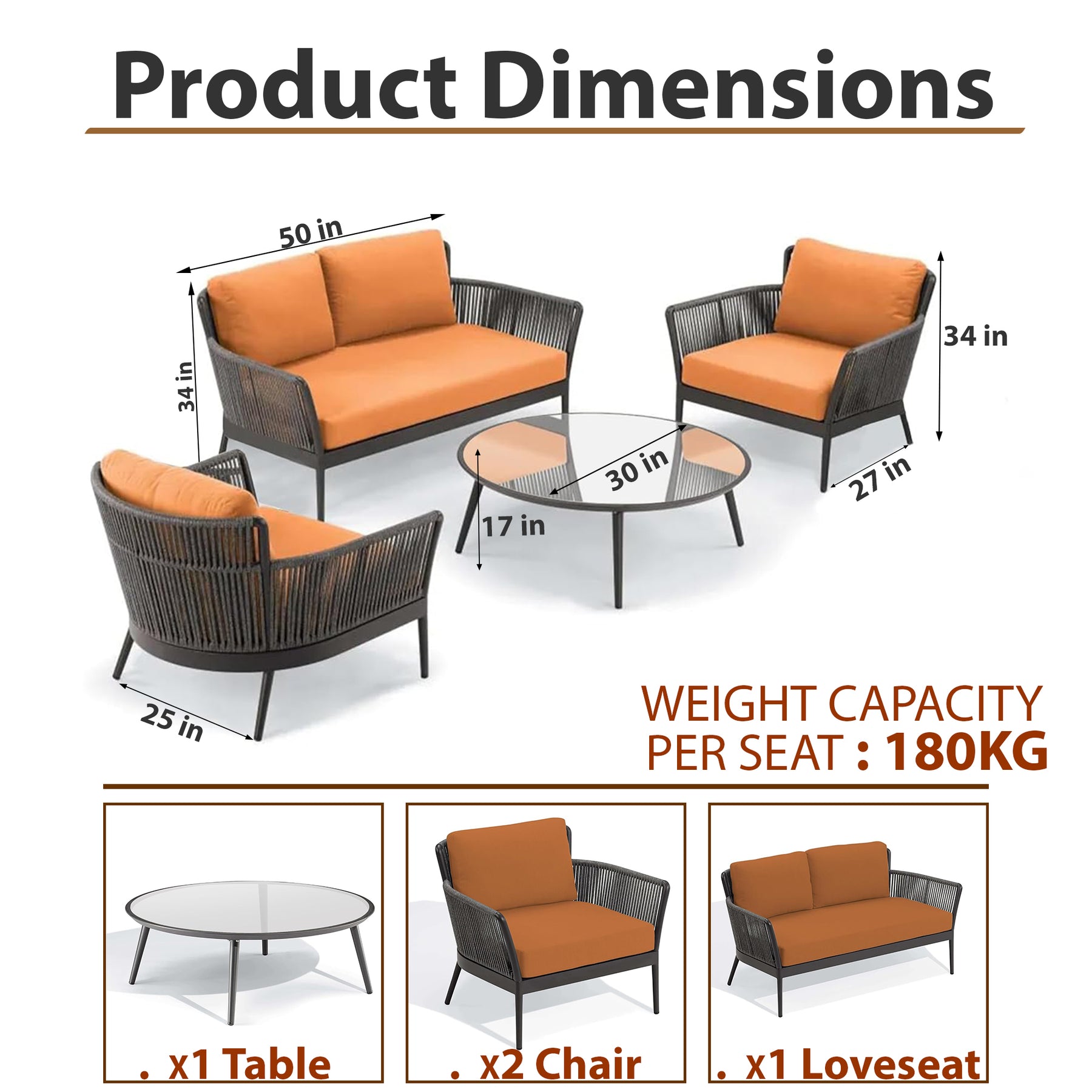 Rua Outdoor Garden Balcony Sofa Set 2 Seater , 2 Single Seater 1 Center Table Set (Dark Grey) Braided and Rope