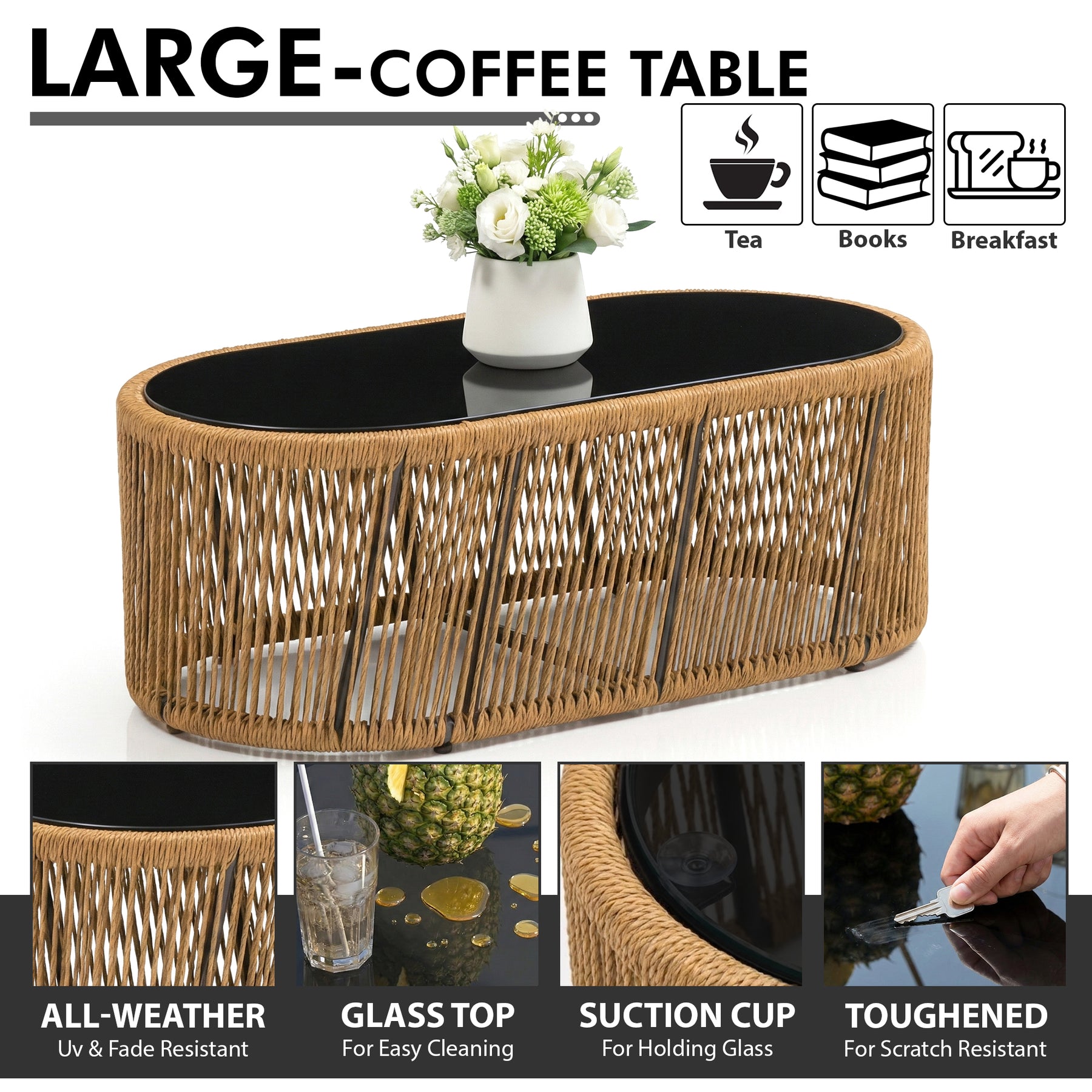 Willa Outdoor Sofa Set 2 Seater , 2 Single seater and 1 Center Table Set (Beige) Braided & Rope