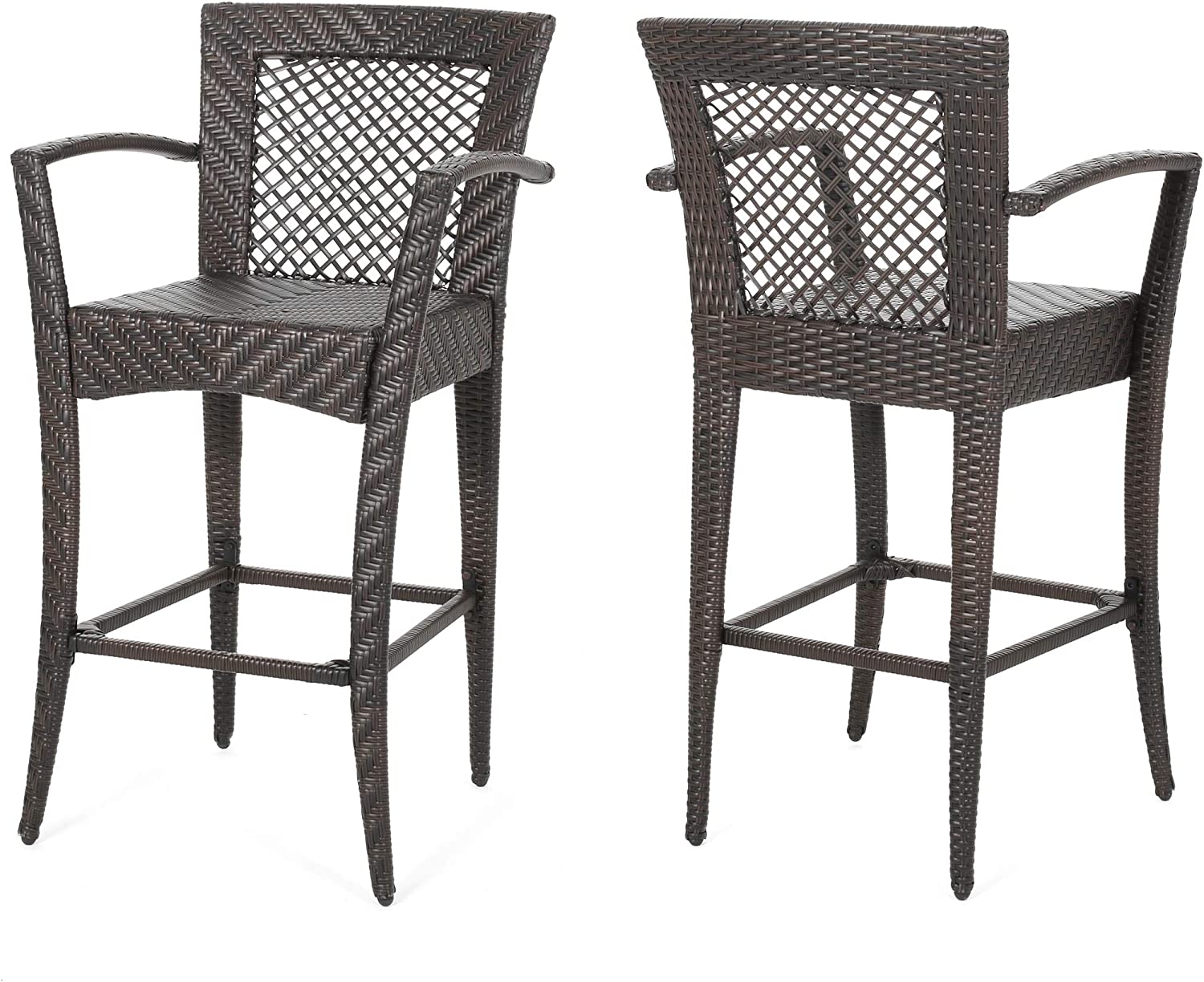 Lorenzo Outdoor Patio Bar Chair 2 Chairs For Balcony (Brown)