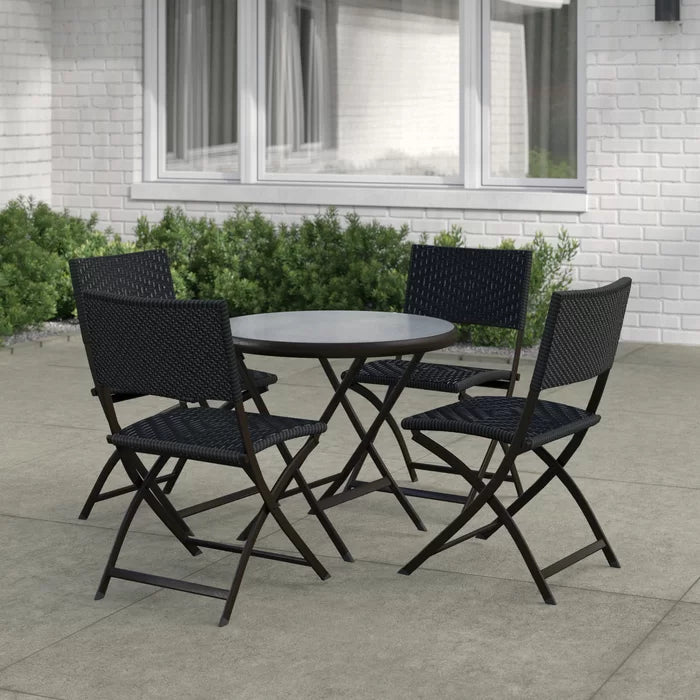 Elisa Outdoor Patio Dining Set 4 Chairs and 1 Table (Black)