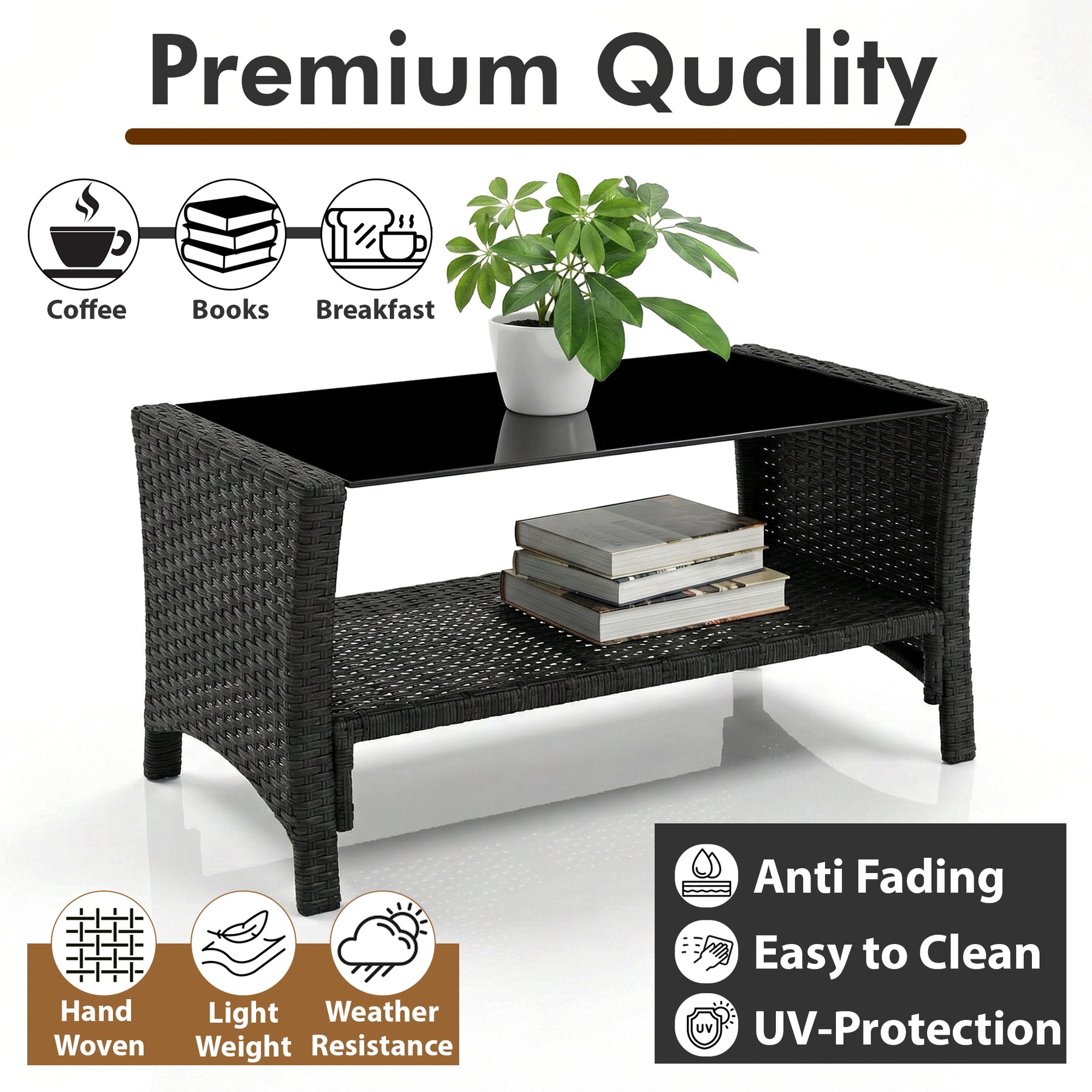 Feya Outdoor Sofa Set 2 Seater, 2 Single seater and 1 Center Table Set (Black)