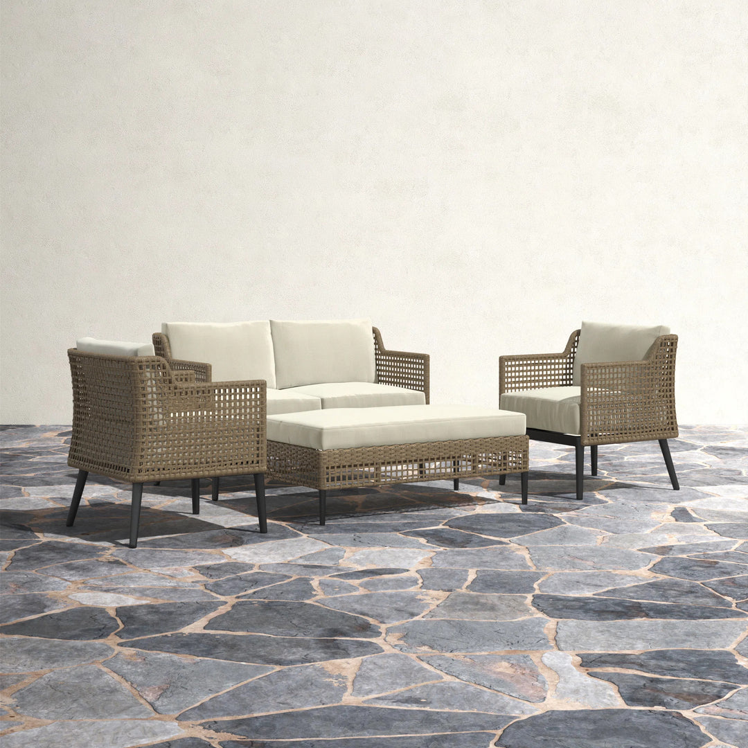 Fuente Outdoor Sofa Set 2 Seater , 2 Single seater and 1 Center Table (Cream+ Brown)