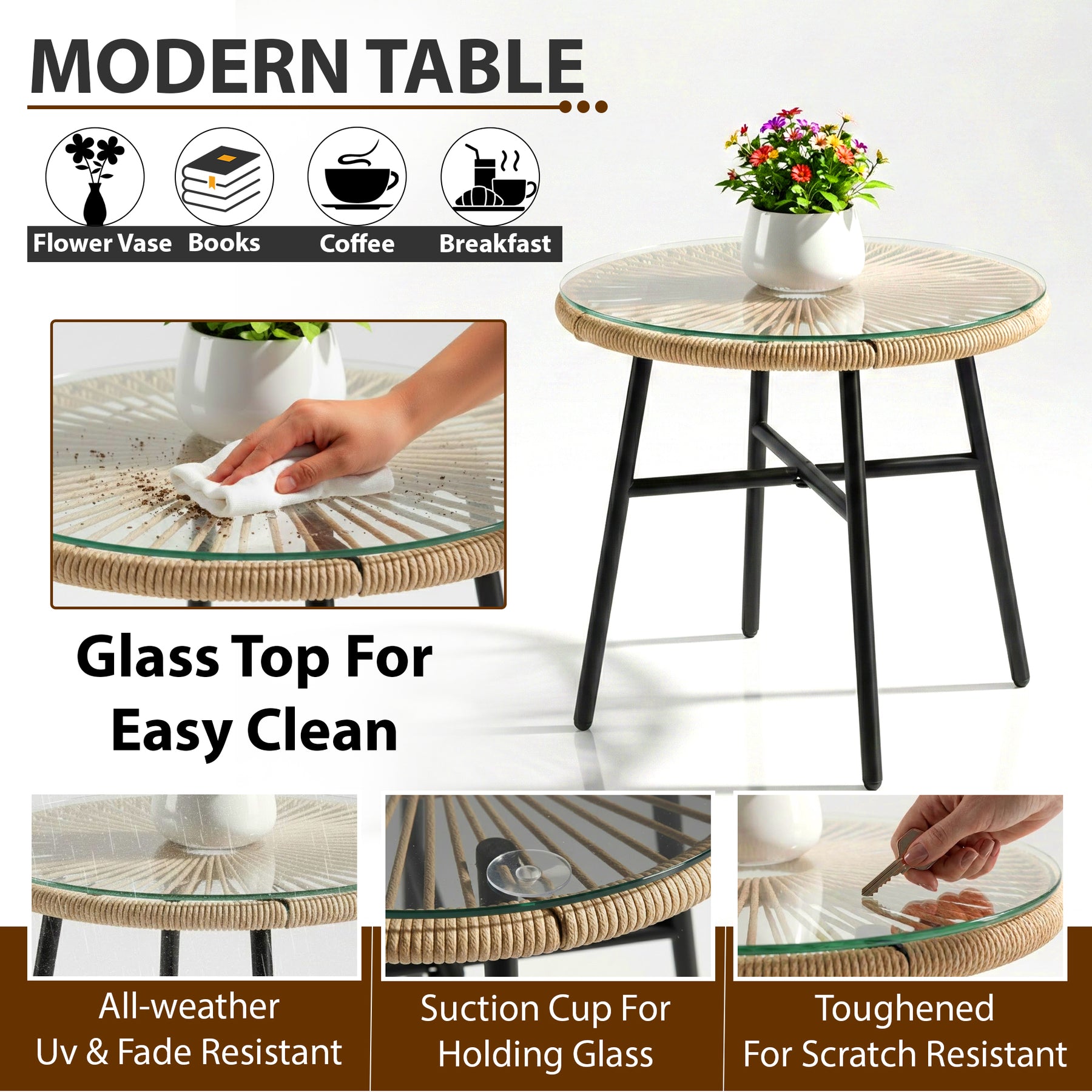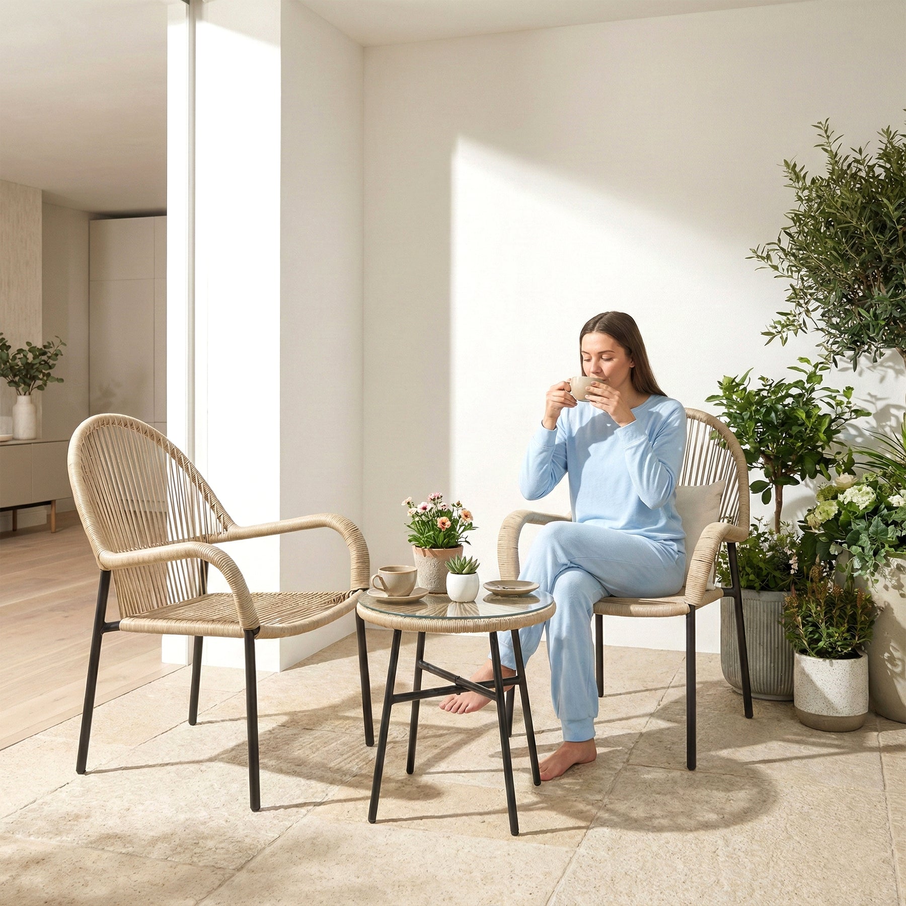 Kivas Outdoor Patio Seating Set 2 Chairs and 1 Table Set (Beige) Braided & Rope