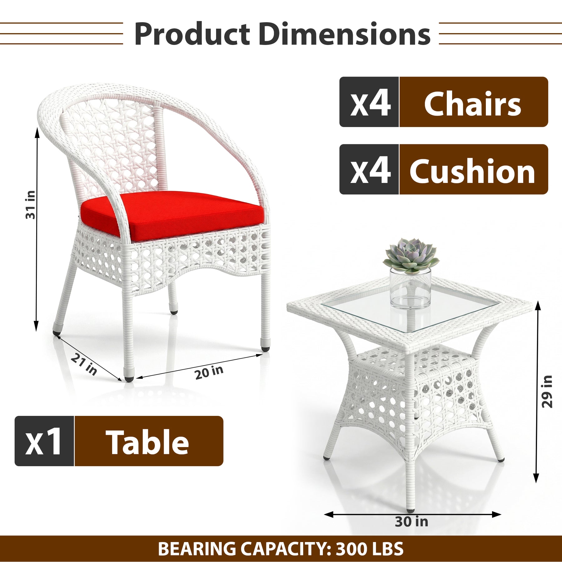 Chair: Height 31 inch x Width 20 inch x Depth 21 inch