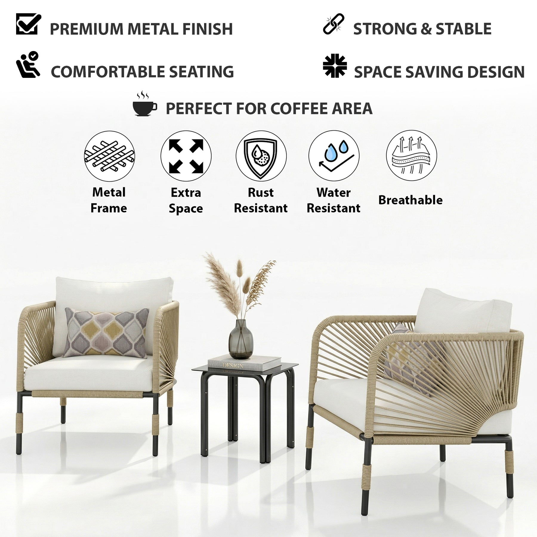 Madera Outdoor Patio Seating Set 2 Chairs and 1 Table Set (Beige) Braided & Rope