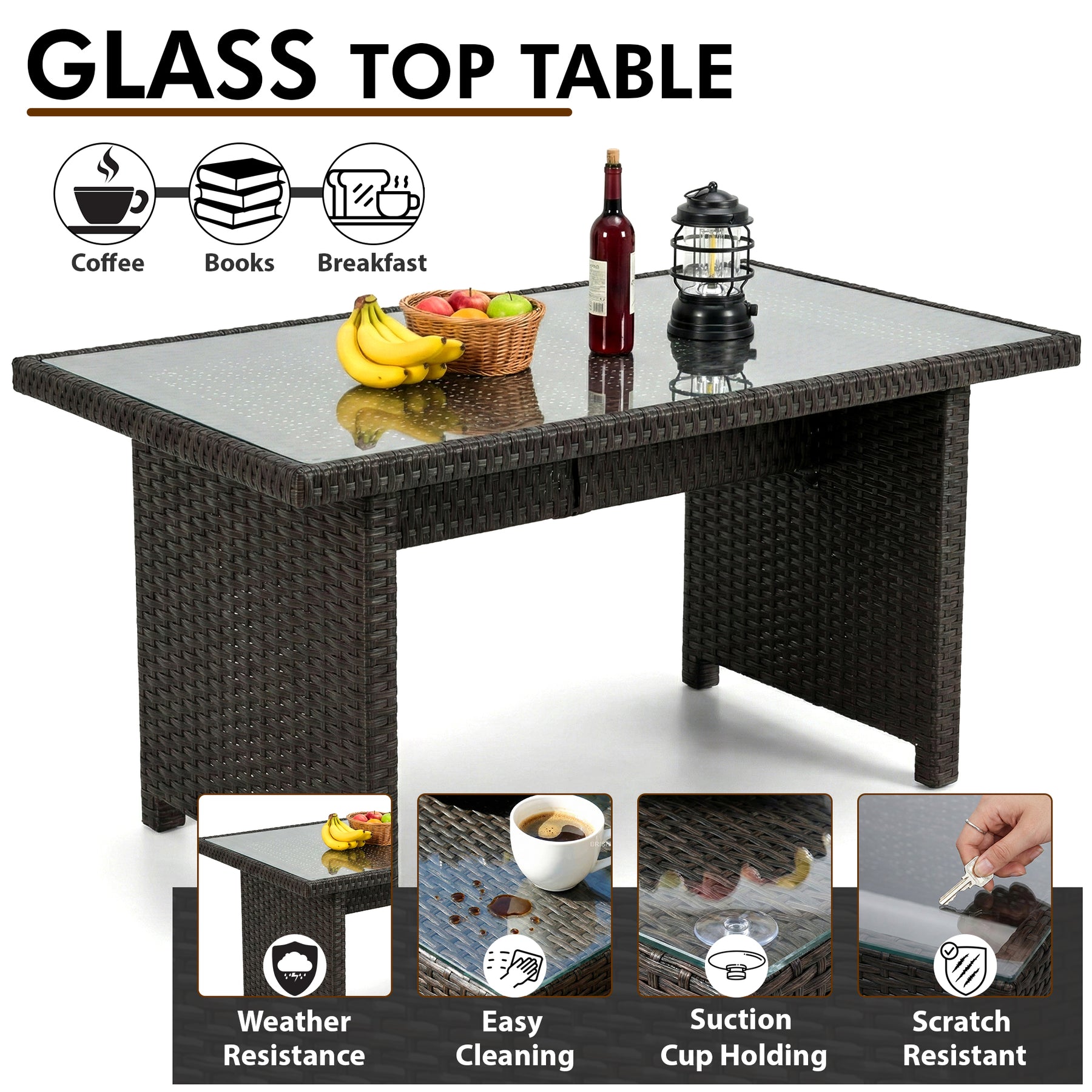 Umile Outdoor Garden Balcony Sofa Set 3 Seater, 2 Single seater, 2 Ottoman and 1 Center Table Conversation Set (Brown)