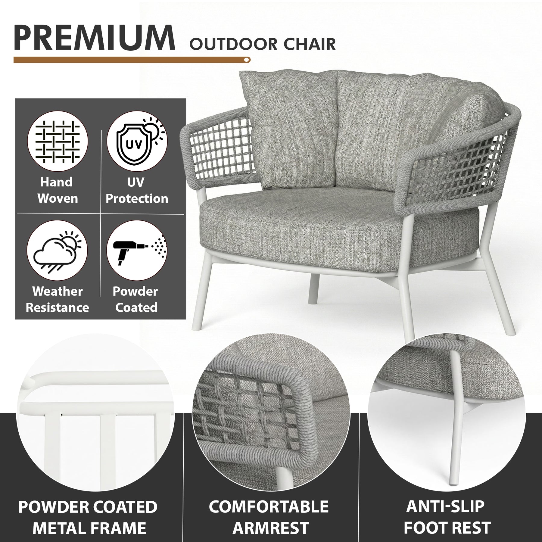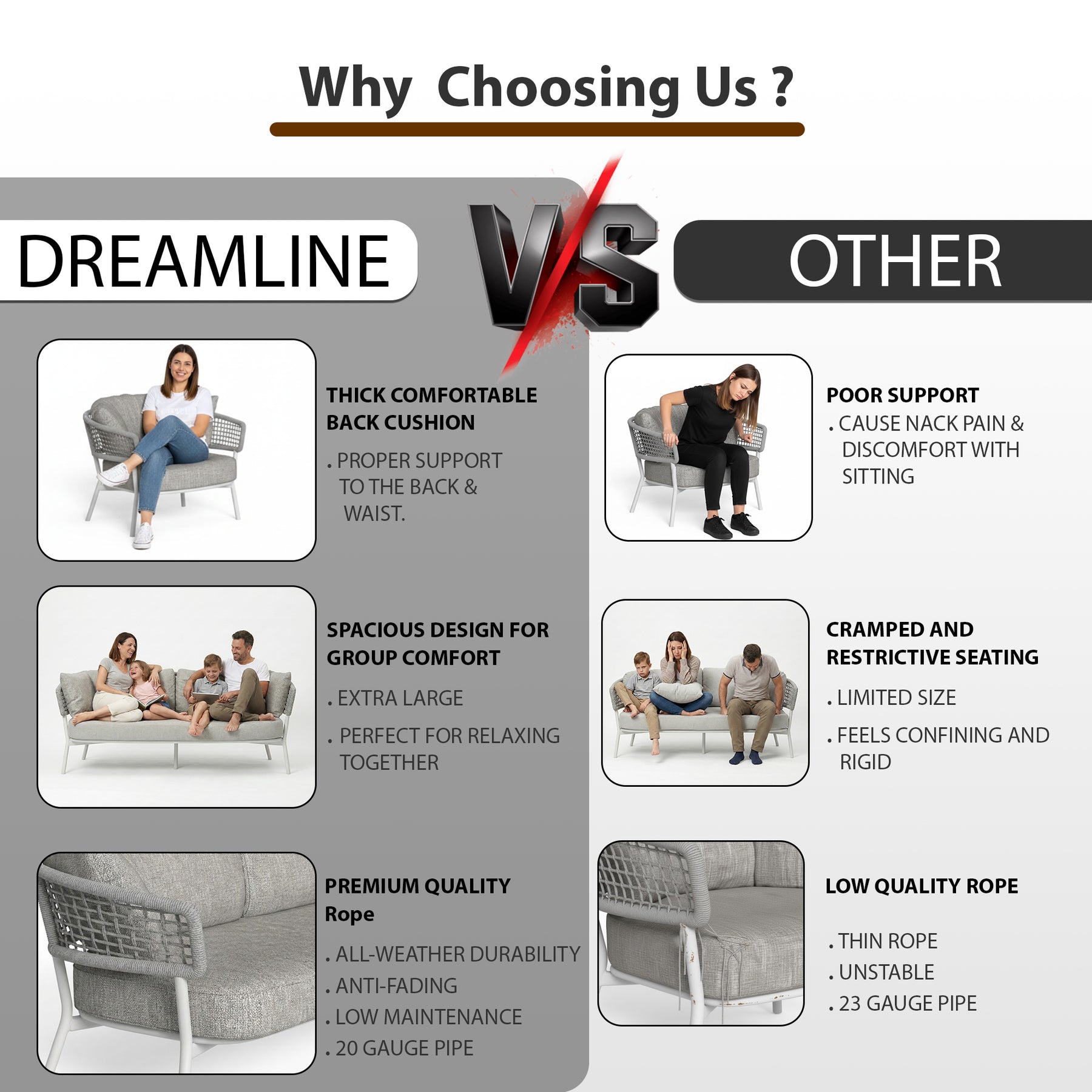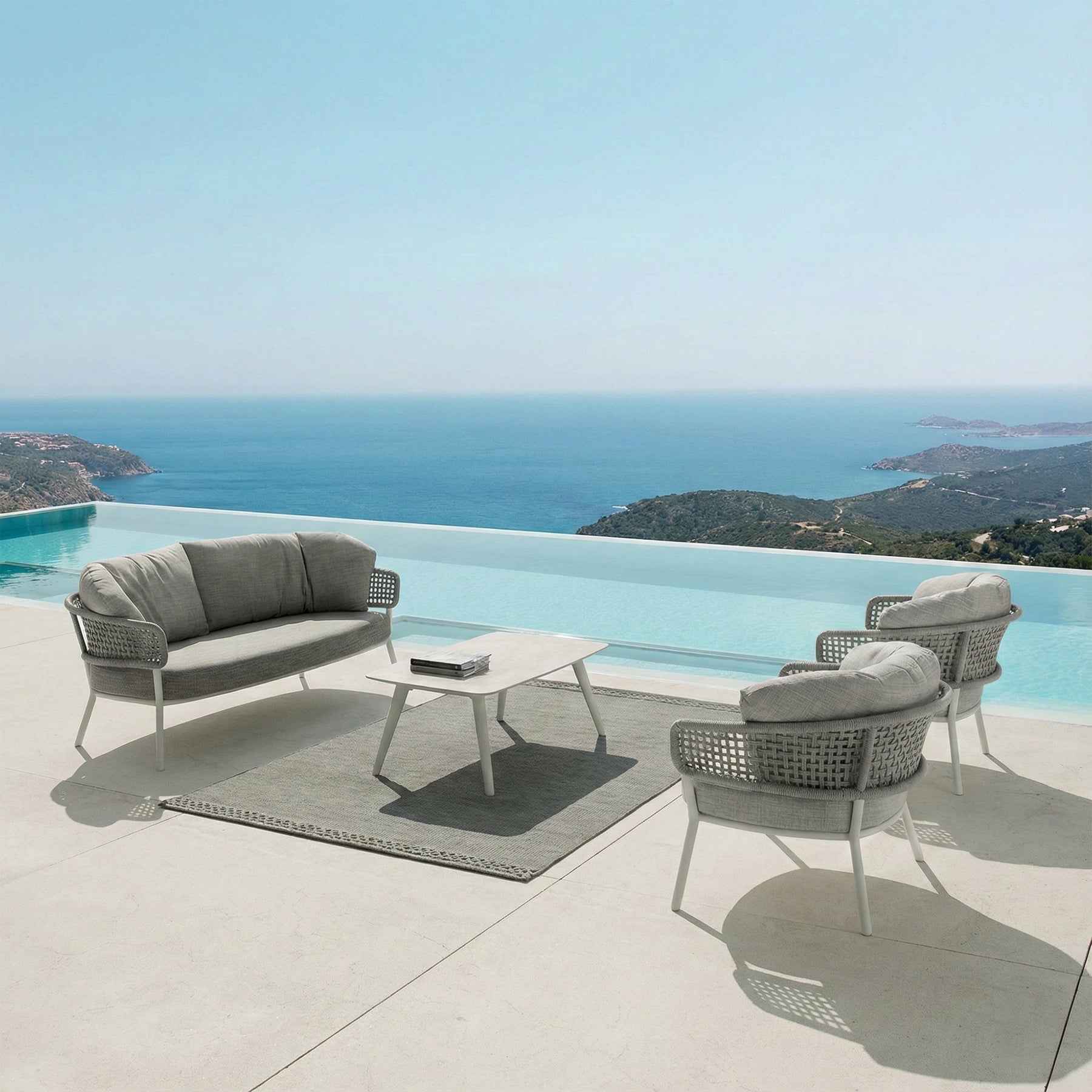 Zion Outdoor Sofa Set 3 Seater , 2 Single seater and 1 Center Table Set (Grey) Braided & Rope